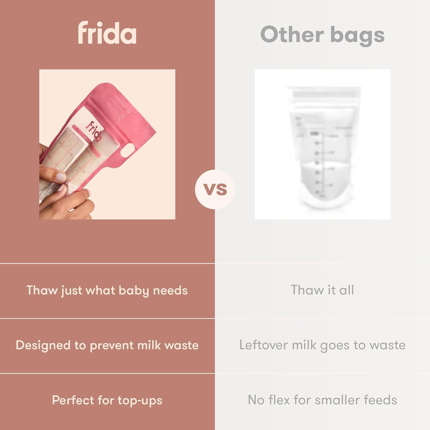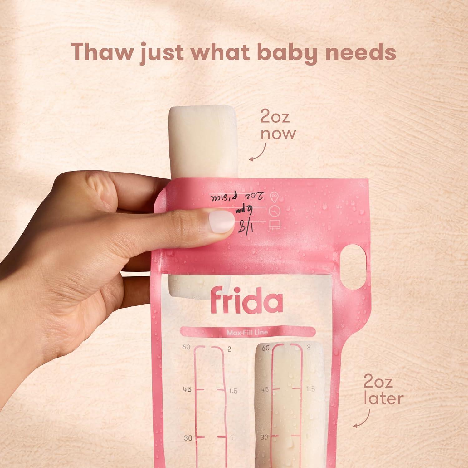 Frida Mom Breastmilk Storage Bags, 50ct Standard Freeze & Thaw Milk Bags for Breastmilk, Leakproof Seal, Perfect Pour Spout, Precise Portions, No Slip Finger Grip, BPA Free, 6oz Bag(50ct Split Stash)
